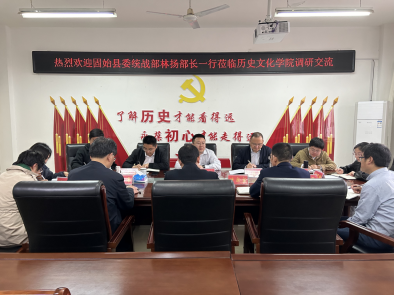 4月16日,固始县委统战部副部长林扬带领县根亲文化发展中心领导来金年会官网调研根亲文化相关事宜。学院班子成员、根亲文化与两岸交流研究中心尹全海教授等参加。