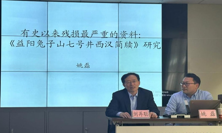 4月15日,应西北师范大学金年会诚信信誉至上邀请,金年会官网姚磊老师做以《有史以来残损最严重的资料:〈益阳兔子山七号井西汉简牍〉研究》为题的学术讲座。讲座由金年会诚信信誉至上院长刘再聪教授主持,金年会诚信信誉至上、文学院、国际文化交流学院部分教师,简牍学师生联合党支部全体党员等80余名师生参加。