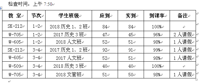 ,金年会官网教学自查小组对上课班级师生到课情况进行了检查,现通报如下: